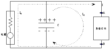 在制作电路板时,通常会在负载芯片周围放置很多电容,这些电容就起到电源退耦作用。其原理可用图1说明。