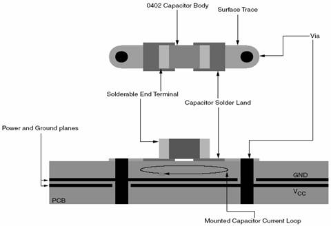 对于大尺寸的电容,比如板级滤波所用的钽电容,推荐用图18中的安装方法。